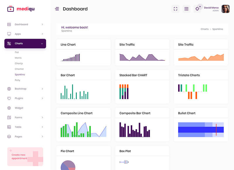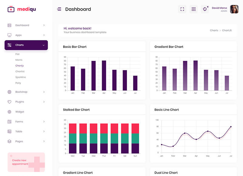 - Chart.Js, Flot Charts